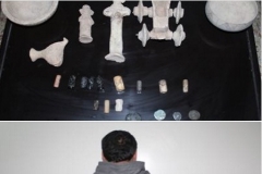 تمكن مكتب المكافحة بعد المتابعة والتحري من إلقاء القبض على المدعو ( أ / ح ) البالغ من العمر 29 عاماً, إذ عثر بحوزته على قطع أثرية قديمة