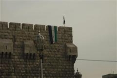 Syrian independence flag hung on the Saladin Castle in the Old City, Damascus