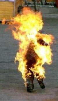 من الداخل يصرخ من شدة الغيظ، ثم أحضر البترول الأزرق وأضرم في نفسه النار وفي الوقت