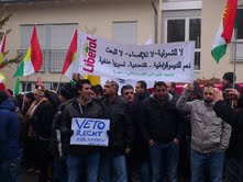 خرج المئات من أبناء الجالية السورية في مدينة بون بألمانيا، منددين بالفيتو