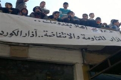 الشبيحة,)كما رفعوا لافتات الدعم للثورة في حمص وأدلب والدير,وأخرى تدعوا لتحقيق الفدرالية(لن نتنازل عن الفدرالية)