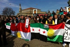 كوردستان سوريا في بداية التظاهرة ومراسيم الوفاء تم وقوف دقيقة صمت وثم