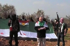 السوري عبر النضال المسلح. وبدا خلف قارئ البيان العلمان السوري والكردي، فيما ردد