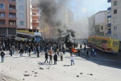 (اكبر حزب كردي في تركيا) تنظيم احتفالات فيها، اقاموا حواجز ورشقوا رجال الشرطة بالحجارة.