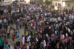 Damascus Central City: Demonstrators denounce Assad’s crimes against the city of Homs Bab Touma: Christian activists along with their Muslim brothers chant for the Syrian revolution promoting the unity of the revolution Maidan: Demonstrators burn tires to block a major road in a protest against the regime’s crimes Barzeh: Activists draw the biggest revolution flag on the town’s walls Aleppo Bayanoun: Deployment of military tanks in the city Damascus Suburbs Douma: Funeral procession of fallen hero Bassam Masri Douma: Assad’s forces open fire at commercial establishments Deir Maqren: Funeral procession of fallen hero Bilal Darkoush Aleppo Suburbs Hayan: Deployment of Assad’s troops in the town Homs Malaab Baladi: Demonstration joined by female activists in solidarity with the cities under repression Bayada: Assad’s forces target the press house Daraa Central Daraa: Demonstration denounces the disappointing position of the international community Hama Hader: Demonstration in solidarity with the cities under repression Hamidiya: Demonstrators denounce the disappointing stance of Arab nations Idlib Jabal Zawiya: Demonstration in solidarity with the city of Homs Habit: Mass demonstration in solidarity with the city of Aleppo Tah: Muslim and Christian demonstrators chant for the unity of the Syrian people Deir Azzour Tayana: Demonstrators chant for freedom and demand the ouster of Assad despite the presence of military tanks in the city, P2 Hasaka Ghweran: Demonstrators denounce the disappointing positions by the international community and insist on their demands for freedom Ras Ain: Sit-in at the freedom square to demand the release of detainees Demonstrations Abroad USA: Syrians in California hold community picnic and rally for free Syria Spain: Syrians protest in solidarity with the Syrian revolution |