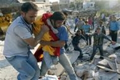 وأحالت الضربة الجوية عدة بيوت في البلدة إلى أنقاض ونبش عشرات الرجال بين الأنقاض بحثا عن ناجين