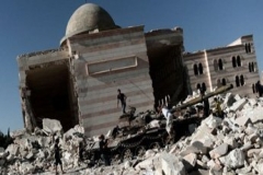 ولفتت الهيئة العامة للثورة السورية الى استهداف مسجد الحسن والحسين في عندان بريف حلب بقنبلة من طائرة حربية لمنع التظاهر.