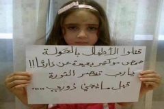 Armed Resistance Boukamal, Deir Azzour: Rebel fighters capture a military tank Douma, Damascus suburb: A rebel fighter destroys a military tank Saif Adola, Aleppo: Rebel fighters repel the regime’s ground assault Damascus Maidan: Helicopter gunships bombard the neighbourhoods of Qadam and Nahar Aisha Salhiya: Demonstrators chant their support for the city of Daraa and the rest of restive towns Shaghour: Demonstrators protest the regime’s crimes and demand its downfall Hajar Aswad: The devastating aftermath of the fierce and indiscriminate shelling Barzeh: The devastating aftermath of the fierce and indiscriminate shelling Damascus Suburbs Hameh: Demonstrators chant their support for the city of Daraa and the rest of restive towns Bibila: The devastating aftermath of the fierce and indiscriminate shelling Artouz: Regime forces bombard Omar Bin Khatab mosque Al-Tal: The devastating aftermath of the fierce and indiscriminate shelling Aleppo Saifa Adola: Buildings ablaze as a result of the heavy and indiscriminate shelling Hanano: Demonstrators protest the regime’s crimes and demand its downfall Fardos: The devastating aftermath of the fierce and indiscriminate shelling Sukari: Demonstrators chant their support for the city of Daraa and the rest of restive towns Bustan Qaser: The devastating aftermath of the fierce and indiscriminate shelling Aleppo Suburbs Baz’aa: Lifeless body of fallen hero Ahmad Ashkout Tal Refaat: Demonstrators protest the regime’s crimes against humanity Ezaz: Sounds of heavy shelling echo in the town Marea: MIG fighter jets overly the town Homs Distress call by Syrian activists to save the lives of the trapped civilians Waer: Demonstration in solidarity with the cities and towns under repression Talbiseh: Regime forces resume shelling the town Bayada: Heavy artillery bombards the town Khaldiya: Residents discover unexploded ordnance Ghanto: Cloud of smoke fill up the sky as a result of the fierce shelling Daraa Dael: Demonstration in solidarity with the cities and towns under repression Bosra: Many civilians injured as a result of the indiscriminate shelling Central Daraa: Many civilians injured as a result of the indiscriminate shelling Jiza: Demonstrators chant their support for the cities and towns under repression Nasib: Demonstrators protest the regime’s crimes and demand its downfall Hama Aleppo Road: Demonstration chants support for the city of Daraa and the rest of restive cities and towns Latamna: Many civilians injured as a result of the indiscriminate shelling Taybat Imam: Sounds of heavy shelling echo in the town Karama: Demonstration chants for freedom and demands the overthrow of the regime Idlib Habit: Funereal procession of fallen hero Mohammad Abdul-Karim Ariha: Regime forces bombard the town, killing and injuring many civilians, P2 Jarjinaz: Demonstration chants support for the cities and towns under repression Ma’arshmarin: Many civilians injured as a result of the indiscriminate shelling Deir Azzour Jobaila: The devastating aftermath of the indiscriminate shelling Hamidiya: Houses ablaze as a result of the indiscriminate shelling Sheikh Yasin: The devastating aftermath of the indiscriminate shelling Hasaka Derabsiya: Demonstrators denounce the crimes committed by Assad Amouda: Demonstration chants for freedom and demands the overthrow of the regime Demonstrations Abroad Canada: Activists launch “I’m not just a number” campaign in solidarity with the people of Syria |