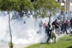 وكان المحتجون قد اضرموا النار في وقت سابق في مطعم أمريكي للوجبات السريعة. وقال المصدر ان 12 فردا من قوات الامن اصيبوا عندما رشقهم محتجون بالحجارة.