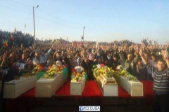 ومن ثم وريت الجثامين الثرى في مقبرة الشهيد رستم جودي في قرية بركفري مع ترديد الجماهير الشعبية الشعارات التي تمجد الشهداء وتنادي بحياة اوجلان وتحي بطولات وحدات حماية الشعب.