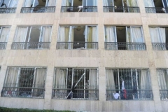 واضاف المراسل أن القذيفة الثانية أصابت جدار مبنى القيادة القومية لحزب البعث الحاكم في سورية الذي يقع إلى جوار الفندق الرياضي، ما أدى الى وقوع 3 جرحى مدنيين بينهم شابة. وتابع أن القذيفة الثانية سقطت في محيط مبنى القيادة القومية، وأنها لم توقع إصابات إذ اقتصرت الأضرار على تكسر زجاج بعض النوافذ.
