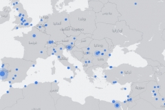 مع نقط زرقاء تمثل كل واحدة مشتركا في "فيسبوك" يقوم بالبث المباشر في اللحظة