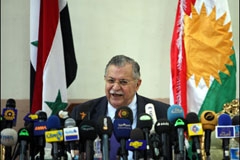 وأشارت اصوات العراق ان العراقية اضافت الاحد ان هوشيار زيباري وزير الخارجية العراقي ووكيله لبيد عباوي ونائب رئيس الوزراء رافع العيساوي ووزراء النفط حسين الشهرستاني والمالية باقر جبر الزبيدي والتجارة عبد الفلاح السوداني كانوا ضمن الوفد العراقي المرافق للطالباني.