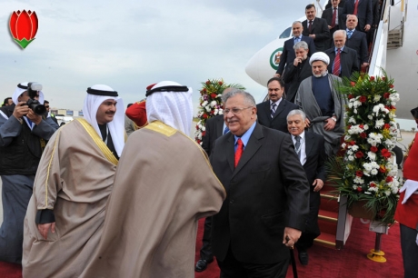 PNA- وصل رئيس جمهورية العراق الفيدرالي جلال طالباني إلى الكويت، الاحد، للمشاركة في مؤتمر القمة الاقتصادية الذي سيعقد غدا الاثنين وكان في استقباله أمير الكويت صباح الأحمد الصباح، بحسب قناة العراقية شبه الرسمية.