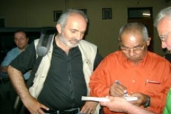 الثائر ليوناردو يتوسط المترجم د.فاسيلي والكاتب بدل رفو