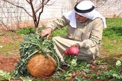 عثر مزارع من مدينة طفس بمحافظة درعا في حقله على حبة فجل تزن 15 كيلوغراما شكلها كروي ولونها مائل إلى الصفرة وشكل أوراقها غريب.