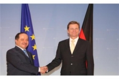 وقال وزير الخارجية الألماني: إنه من الضروري والمهم لنا أن تكون لنا علاقات جيدة مع إقليم كوردستان، مؤكدا على التعاون الإقتصادي والتجاري، وأعلن أنه في القريب العاجل فإن وفدا إقتصاديا وتجاريا من ألمانيا سيزور إقليم كوردستان، كما إن إفتتاح المكتب الإقتصادي الألماني قد قام بدور جيد وفعال في هذه العلاقات، وبهذه المناسبة فقد قام وزير الخارجية الألماني بتعريف القنصل العام الألماني لإقليم كوردستان بالرئيس بارزاني، وأعلن أن بدء الرحلات الجوية المباشرة بين ألمانيا وإقليم كوردستان، وإفتتاح المدرسة الألمانية في كوردستان قريبا، يأتي من إهتمام ألمانيا بإقليم كوردستان.