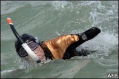 ويأمل فيليب كرويزون (42 عاما) والذي يسبح باستخدام سيقان صناعية في أن ينجح في قطع المسافة التي تبلغ 34 كيلومترا خلال 24 ساعة.