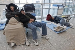 واضطر مئات المسافرين الى قضاء الليل في اغب مطارات اوروبا بسبب عدم قيام الرحلات التي كان مقررا ان يسافروا عليها.