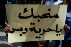 وأضاف مصطفى أن المتظاهرين رفعوا لافتات كتب عليها "نحن دعاة الحرية لا دعاة الجنسية فقط"، وهتفوا "الله سوريا وحرية وبس" و"سلمية سلمية".