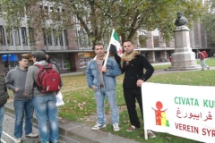 وهذا نص البيان الذي وزعه الناشطين الكورد بدأت الأنتفاضة السورية في مناخ شهدتها الثورات العربية الشعبية ضد أنظمتها القمعية, الاستبدادية, من مدينة درعا البطلة وتوسعت رقعة الإحتجاجات السلمية حتى أمتدت لكل المدن السورية.إن إنطلاقة الثورة السلمية , ثورة الحرية والكرامة , رغم أستخدام النظام كل ما يملكه من قوة عسكرية وشبيحتة لم يستطع أسكات حناجر المتظاهرين السلميين من أجل سورية جديدة , سورية حرة , سورية تعددية .دخلت الاحتجات السلمية شهرها السابع ويستخدم النظام القمع الوحشي ضد المدنيين , والاطفال,وقطع الكهرباء وشبكة الانترنت عن المدن وعزلها عن العالم الخارجي , وقصف المدن وقتل النساء, والجرحى في في المستشفيات ما هي إلا إنتقام من الشعب السوري, وجرائم ضد الانسانية, حسب تقارير منظمة العفو الدولية , ومنظمة هيومن رايت وتش. ,وقد بلغ ضحايا القمع في سورية حتى وصلت الى2700وبحسب تقرير منظمة الامم المتحدة لحقوق الانسان. هي إدانة مباشرة لنظام الاسد وشبيحته.إن أستخدام نظام الاسد القوة والعنف ,ومحاصرة المدن بالدبابات,وقصف المدن بالطائرات, ما هي إلا أكذوبة للإصلاحات الذي ورد في خطاباته المتتالية منذ بدء هذه الاحتجاجات السلمية,وحاول النظام ويحاول جاهداّ استغلال وزرع الفتنة الطائفية والعرقية لتقويض الوحدة الوطنية ,والسلم الاهلي. وقد أقدم النظام الفاشي على الأعتداء بالضرب على البرلماني السابق رياض سيف , وقيامه بإغتيال الناشط السياسي الكردي مشعل التمو7.10.2011 وجرح نجله والانسة زاهيدة رشكيلو.لهو بادرة خطيرة لترهيب السكان المدنيين.عرف المناضل الشهيد مشعل التمو بناشطه السياسي في سورية عامة وبين شعبهالكوردي خاصة,مدافعا عن الديمقراطية مشعل التمو: مواليد1958 وقد أعتقل بتاريخ 15.08.2008 وحكم عليه ثلاث سنوات ونصف على خلفية آرائه السياسية ,وأفرج عنه في 5.06.2011 وقد سبق أن تعرض لمحاولة إغتيال فاشلة في9.09.2011.إن الشعب السوري بعربه وكورده وأقلياته قد حسم أمره, إنه لاعودة إلى ما قبل الخامس عشر من اذار حتى أسقاط النظام والأنتقال إلى دولة مدنية تعددية, دولةتسود فيها المساواة في الحقوق, وتحقيق للعدالة الأجتماعية ,ومفهوم المواطنة ,سورية لكل مواطنيها, كورده وعربه وجميع أقلياته .إن تردد المجتمع الدولي وحتى هذه اللحظة, عدم صدور قرار من مجلس الامن الدولي للإدانة النظام وحماية المدنيين,وذلك بإرسال مراقبيين دوليين كما ينص عليها وثائقحقوق الإنسان من حماية للمدنيين العزل,لهمّ شركاء مع النظام في قتل المدنيين العزل.عاشت سورية حرةعاشت الثورة السوريةالمجد والخلود لشهداء الثورةتجمع الكرد السوريين في فرايبورغ وتوابعها لدعم الثورة السوريةFreiburg den 13.10.2011Cevak-kurd@gmx.de